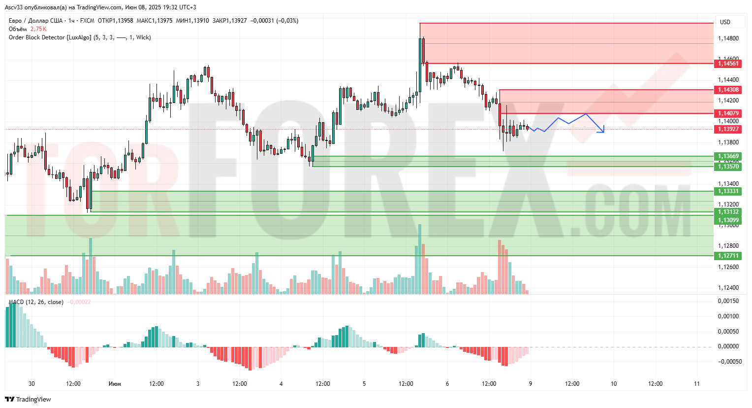 1,14079–1,14308 — зона ближайшего давления, где ранее началась фиксация прибыли.