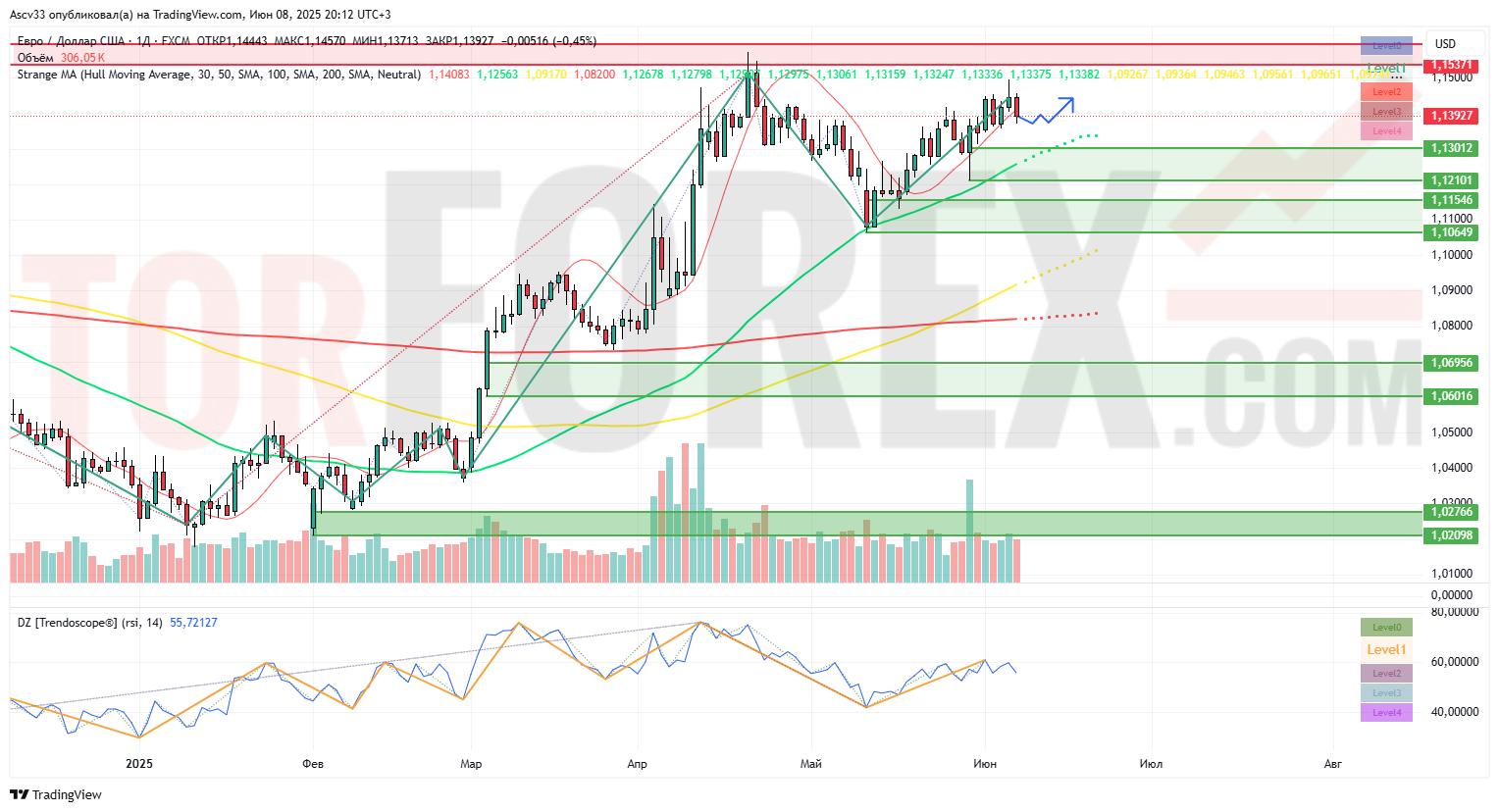 Пара EUR/USD завершила первую неделю июня вблизи локальных максимумов, продолжая укрепление на фоне позитивной технической структуры. Несмотря на краткосрочную консолидацию, общий настрой остаётся умеренно бычьим. Поддержку евро оказывают технические сигналы и устойчивость над ключевыми уровнями.