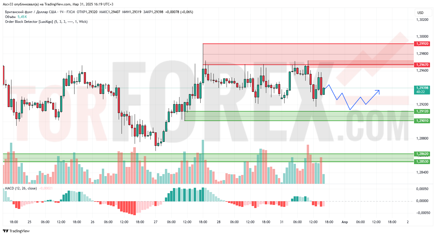 - 1,29670–1,29920 — зона активного предложения, откуда ранее происходили развороты вниз;