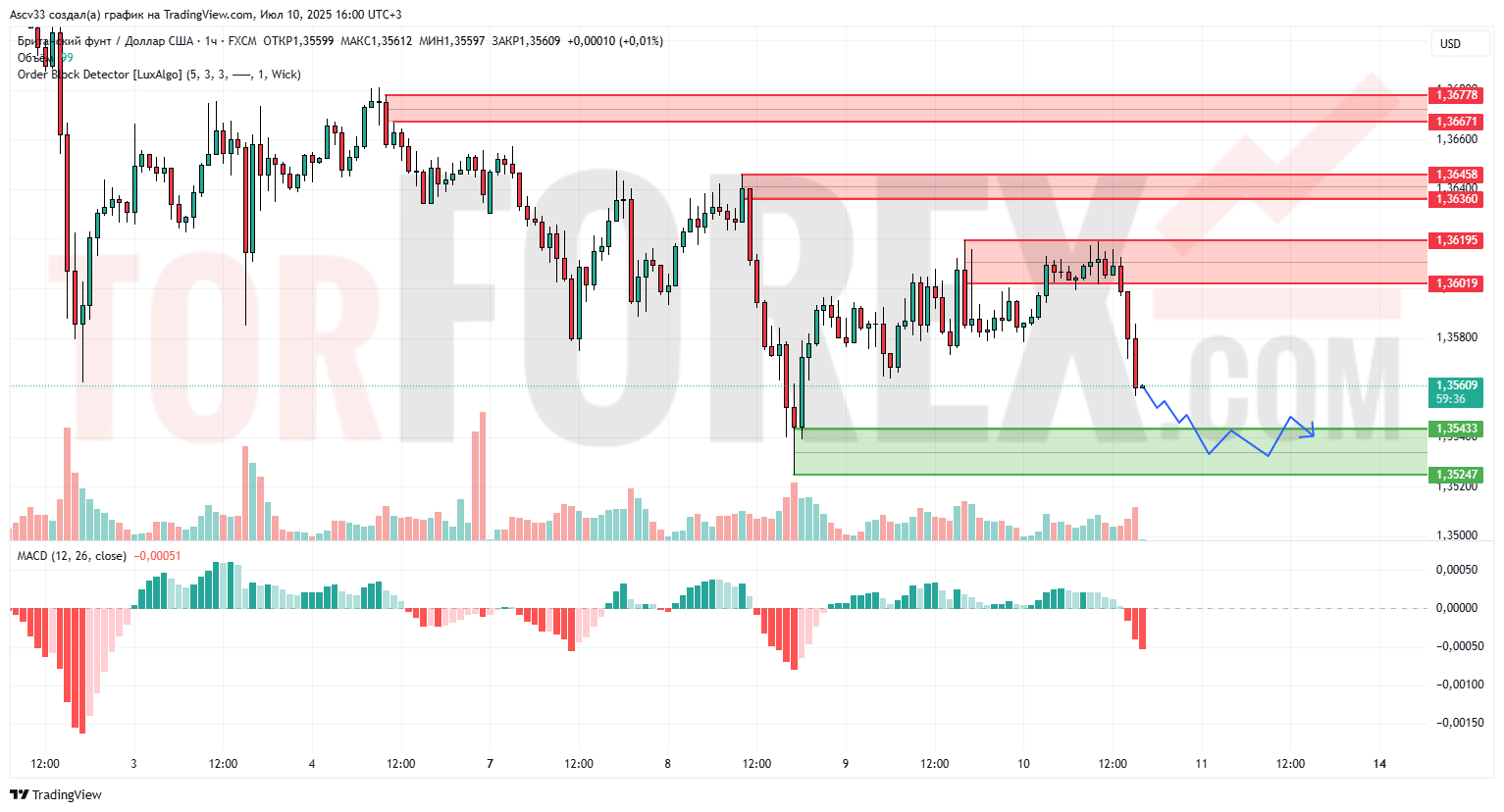 1.36360–1.36458 — более высокий диапазон, в котором также ранее активизировались продавцы.