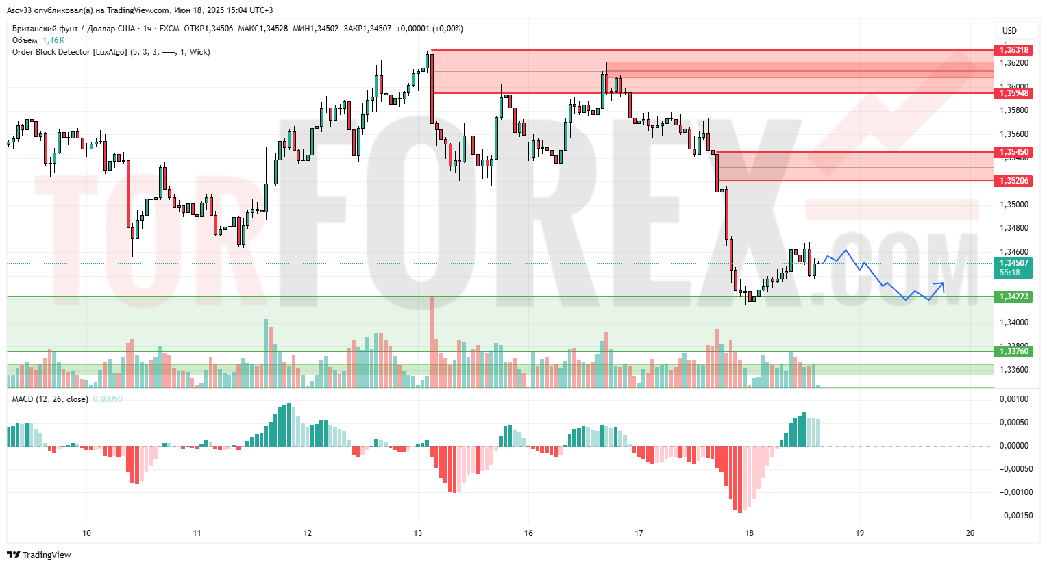 Пара GBP/USD демонстрирует коррекционное движение после резкого снижения из области 1,3590. На текущий момент цена пытается стабилизироваться вблизи уровня поддержки 1,3422, но импульса на восстановление пока не наблюдается. Давление со стороны продавцов сохраняется.