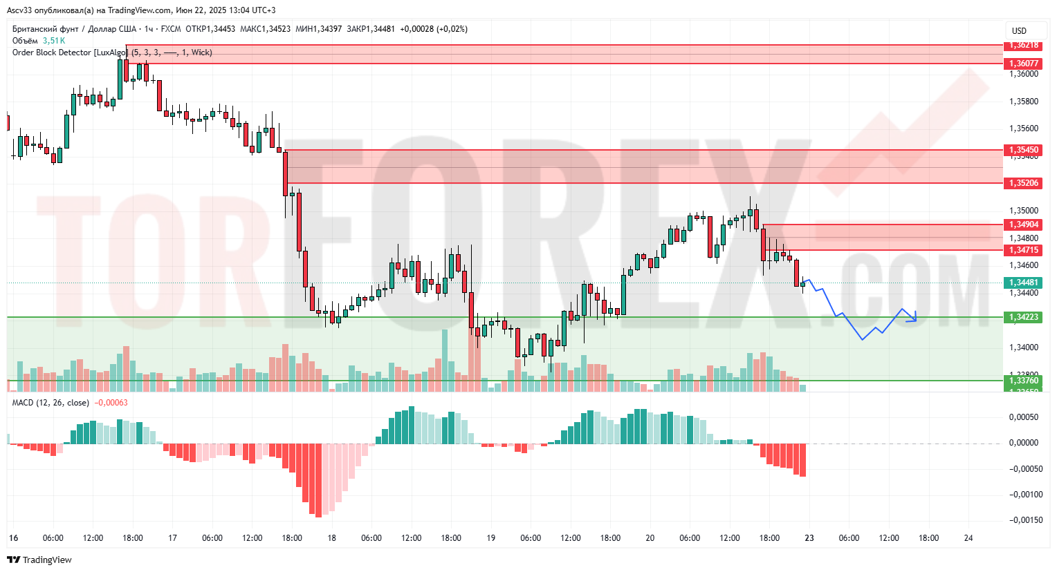 1.3422 — ближайшая зона поддержки, возможно, будет протестирована в ближайшие часы.