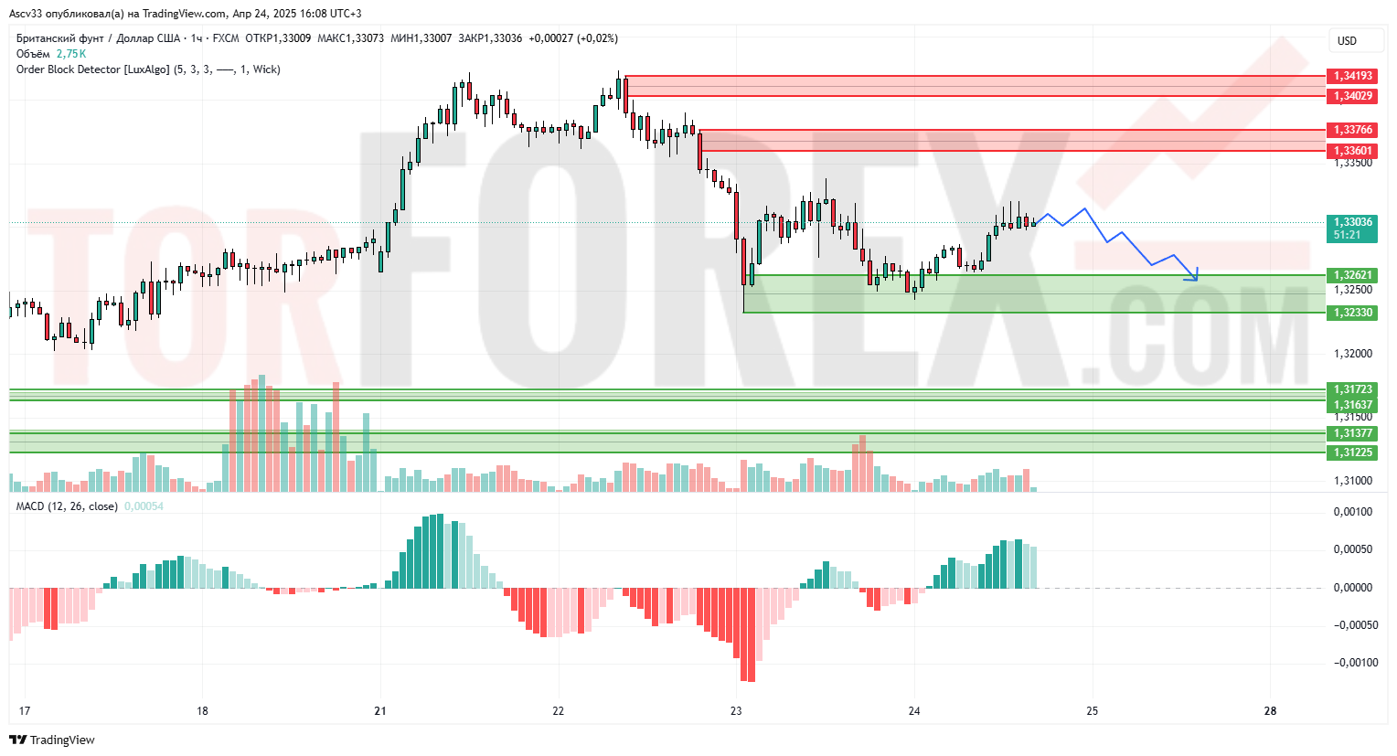 Ожидается откат от зоны 1.3300–1.3360 с целью снижения в район 1.3262–1.3233. Пробой выше 1.3360 отменит сценарий снижения.