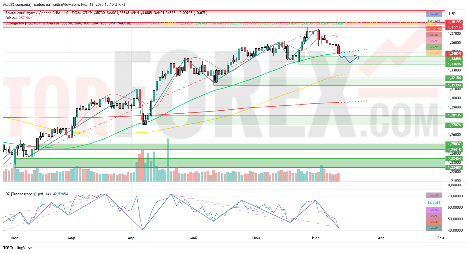 Торговая идея: искать продажи при коррекциях в район 1,3550–1,3600 с целями 1,3450 и 1,3380. Альтернатива — покупки от уровня 1,3369 при признаках стабилизации и формировании бычьей свечной модели.