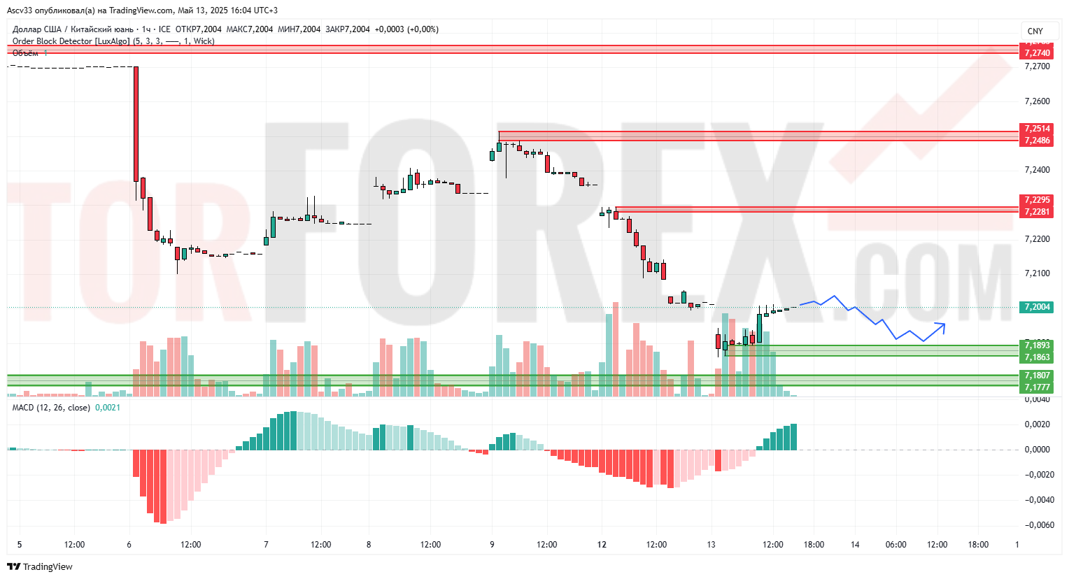 ожидается консолидация в диапазоне 7,18–7,22. при пробое ниже 7,18 возможно движение к 7,16 и ниже. устойчивый рост выше 7,22 откроет путь к 7,25. базовый сценарий — боковое движение с уклоном вниз.