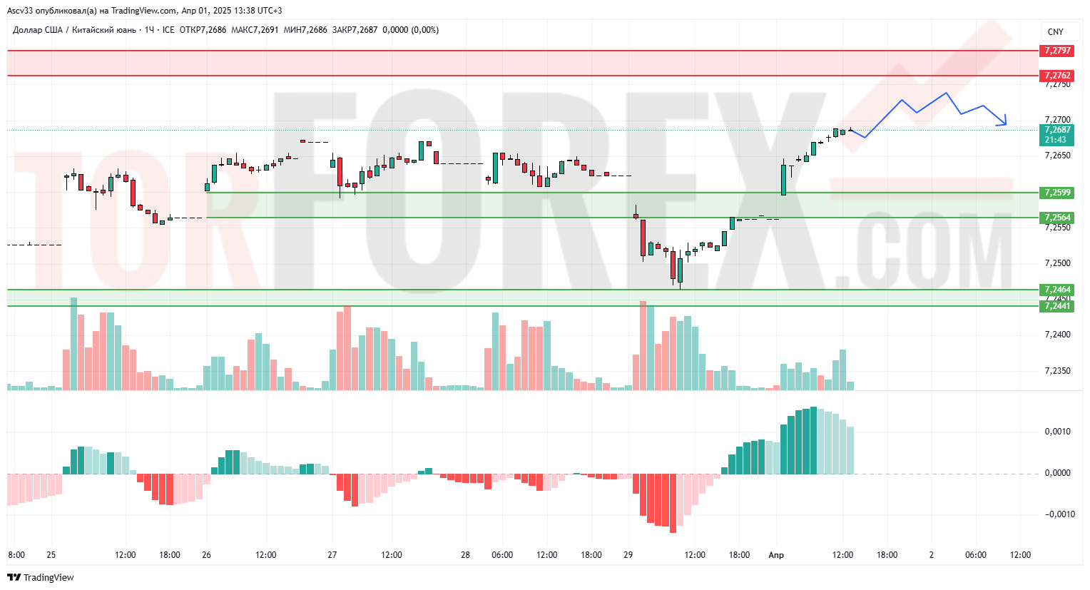 Прогноз Доллар Юань USD/CNY на 2 апреля 2025