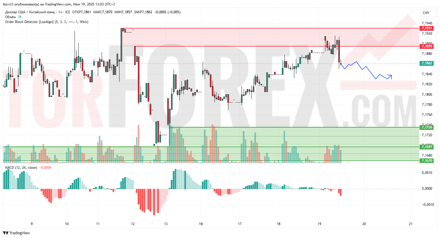 7.1697–7.1670 — основная поддержка, где ранее формировался разворот. Здесь возможна реакция покупателей.
