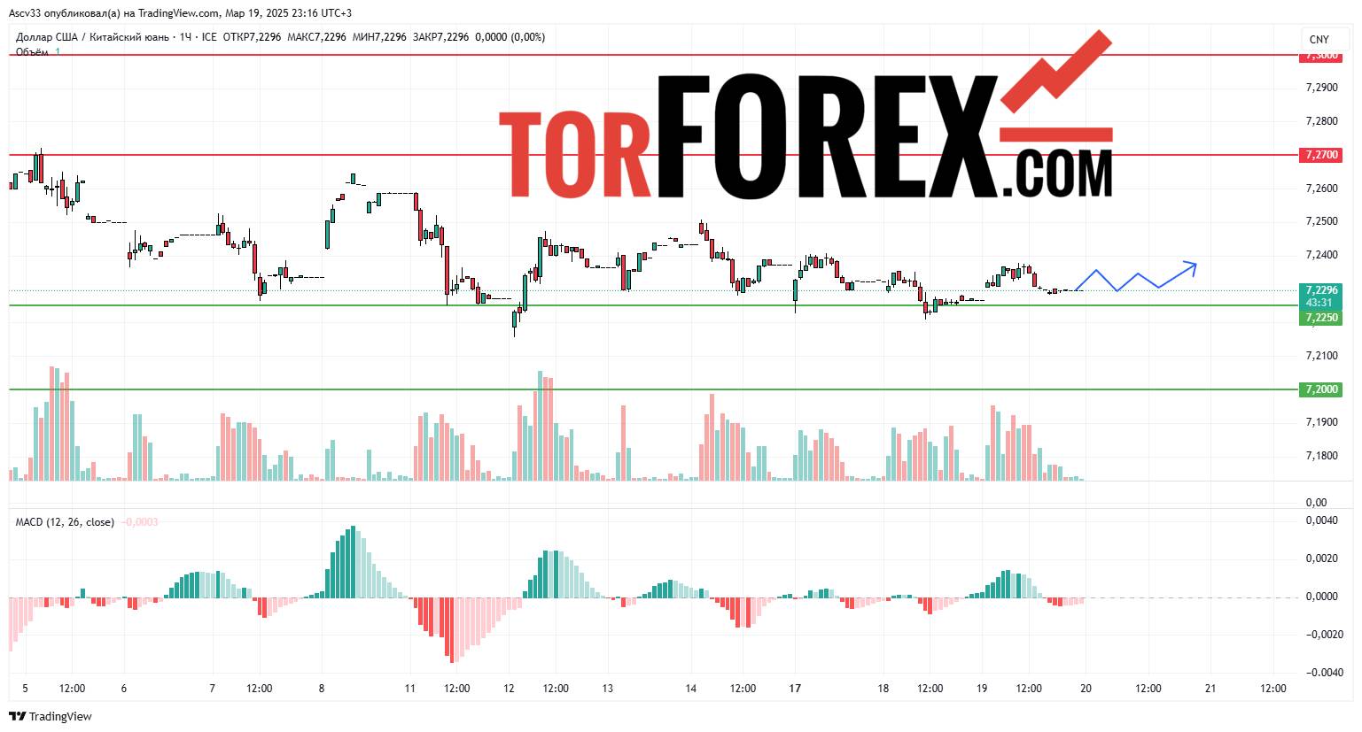 Ожидается, что USD/CNY останется в диапазоне 7,2250–7,2700 в течение ближайших суток. Пробой 7,27 вверх подтвердит восходящее движение, тогда как закрепление ниже 7,2250 усилит нисходящий импульс. Трейдерам рекомендуется внимательно следить за динамикой курса у этих ключевых уровней, так как их пробой определит дальнейшую траекторию валютной пары.