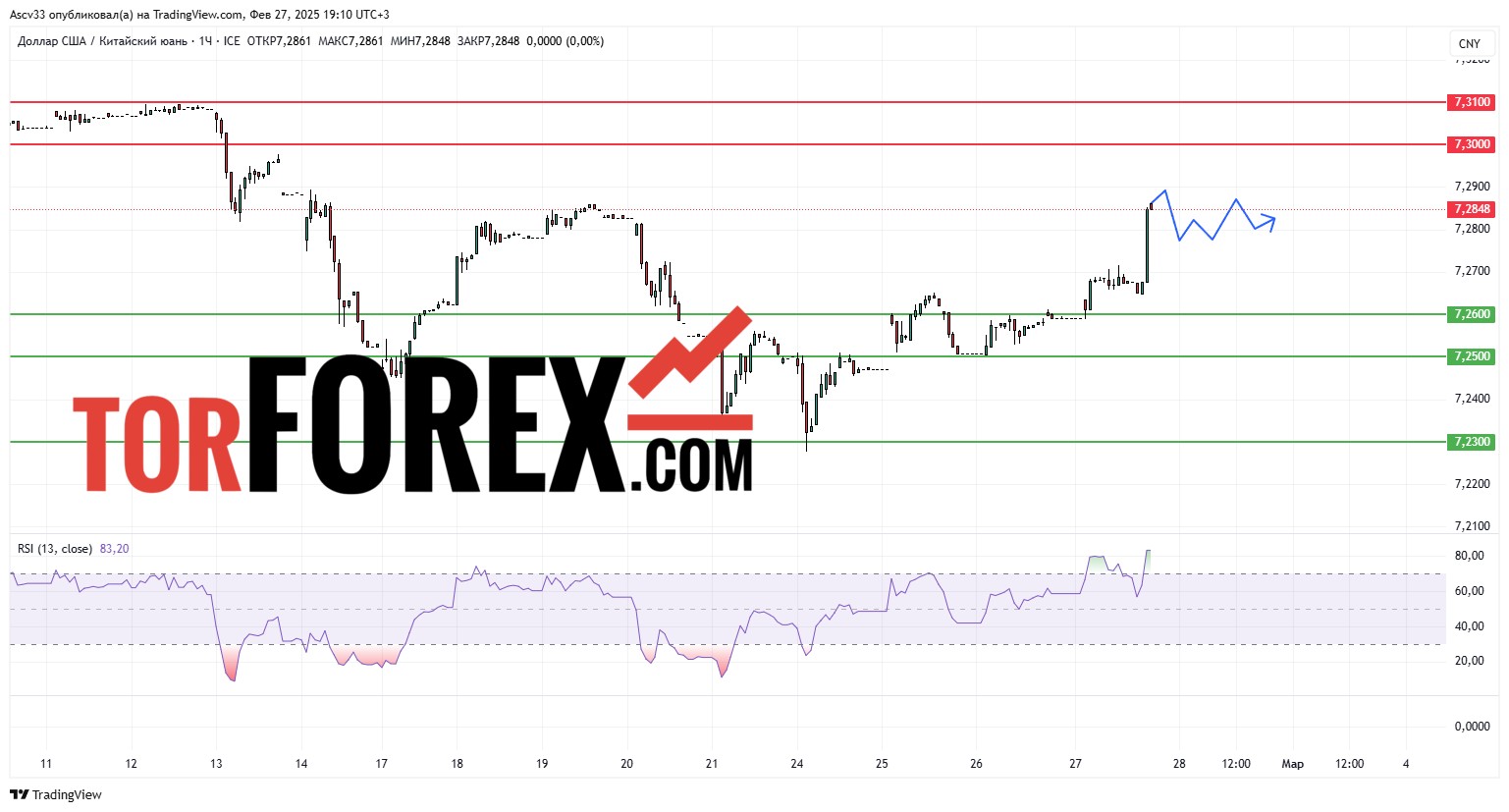 В ближайшие сутки пара USD/CNY, вероятно, продолжит движение в диапазоне 7,26–7,30. Трейдерам рекомендуется внимательно следить за реакцией цены на указанные уровни поддержки и сопротивления, поскольку их пробой может указать на дальнейшее направление движения.