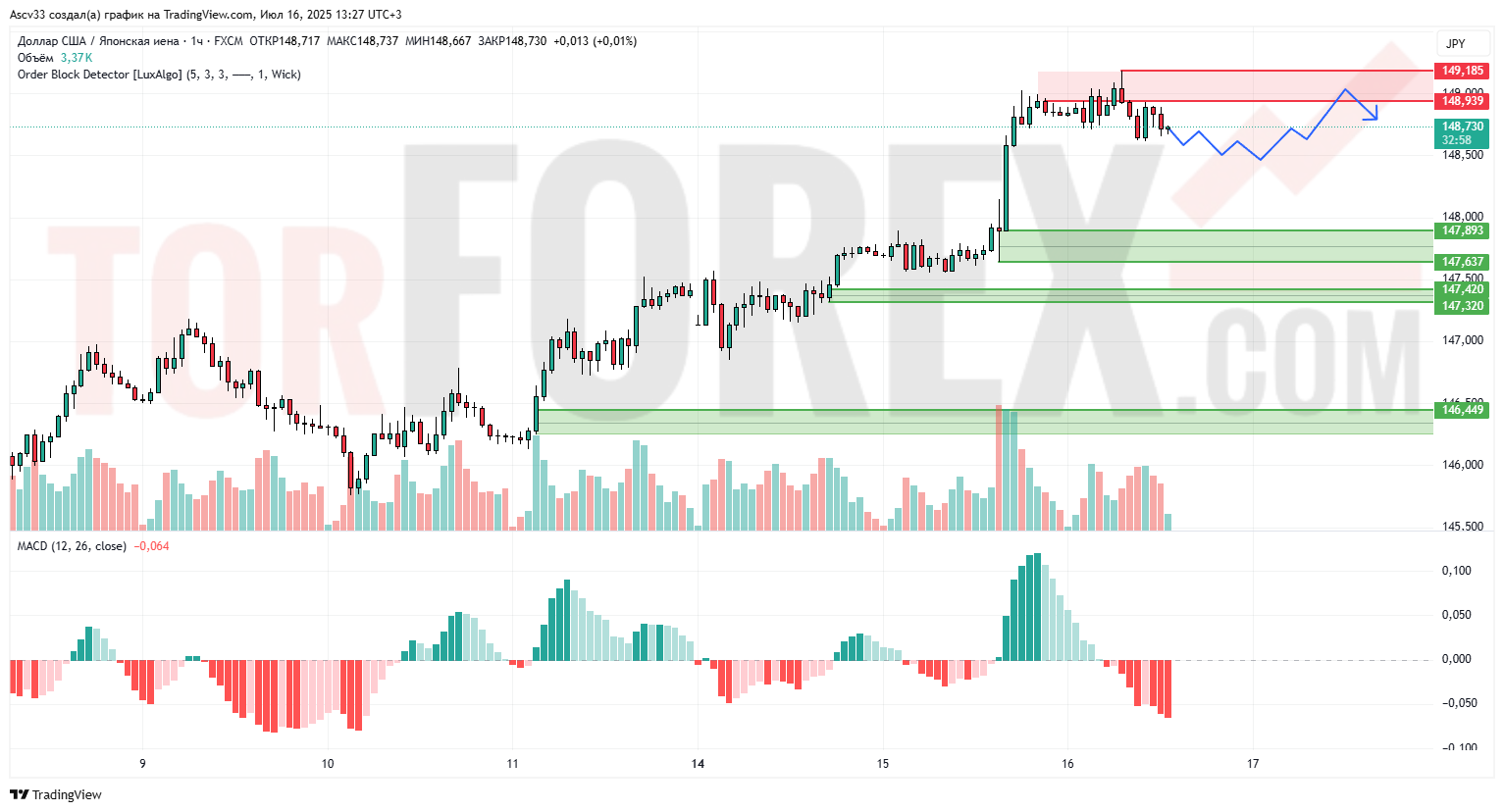 Ниже находятся уровни 147,42–147,32, которые ранее выступали в роли накопления перед ростом.