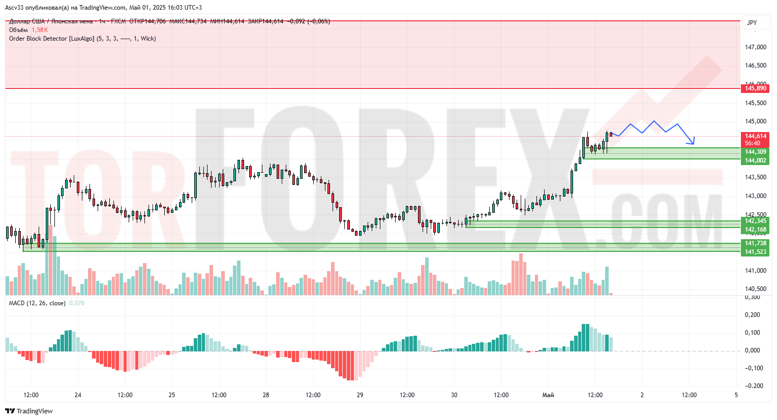 В краткосрочной перспективе ожидается боковое движение с возможной коррекцией к зоне 144,00–144,30. Рост выше 145,00 потребует импульсного пробоя и закрепления выше сопротивления.