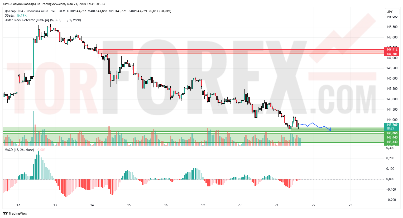 Ожидается консолидация в диапазоне 143,45–144,00. Пробой ниже 143,44 может привести к снижению в район 143,00 и ниже. Восстановление выше 144,00 потребует усиления объёмов и сигналов от индикаторов, чего на данный момент не наблюдается. Приоритет остаётся за нисходящей или боковой структурой.