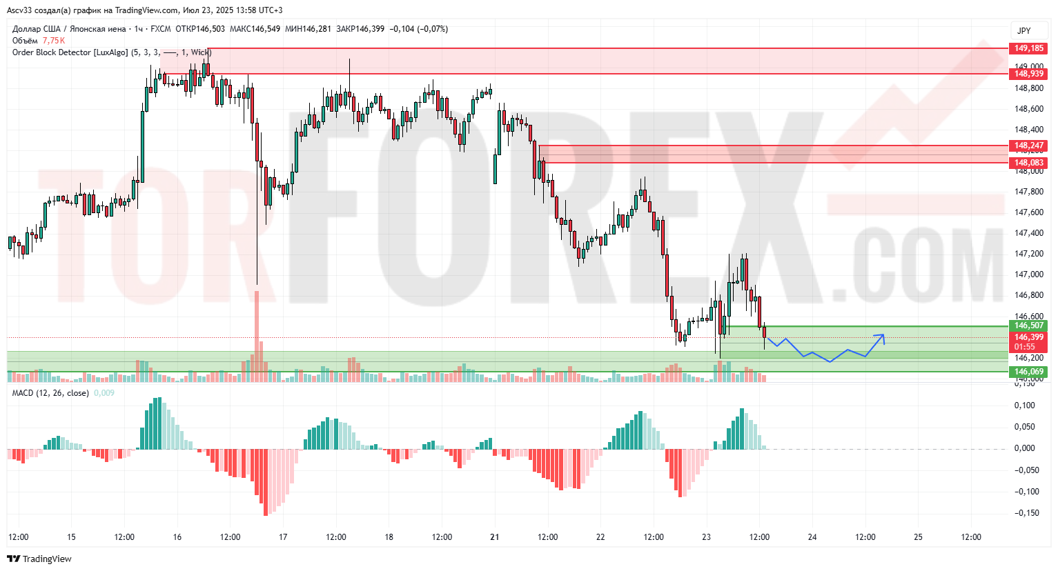 Пара, вероятно, будет торговаться в диапазоне 146.07–146.50 с попытками выхода вверх. Устойчивый пробой выше 146.50 может привести к росту в область 147.00. Пока цена удерживается выше 146.07, сохраняется вероятность коррекционного восстановления.