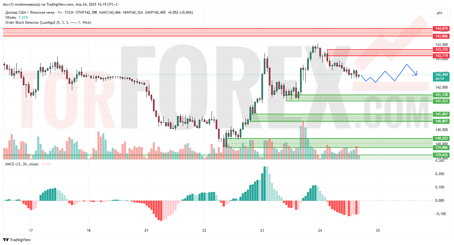 при удержании зоны 142.00–142.20 возможен отскок к 143.10–143.30. В случае пробоя ниже — вероятна коррекция в область 141.50 и ниже.