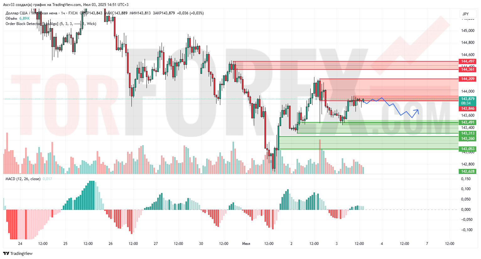 144,20–144,50 — зона предложения, где ранее происходил разворот вниз.