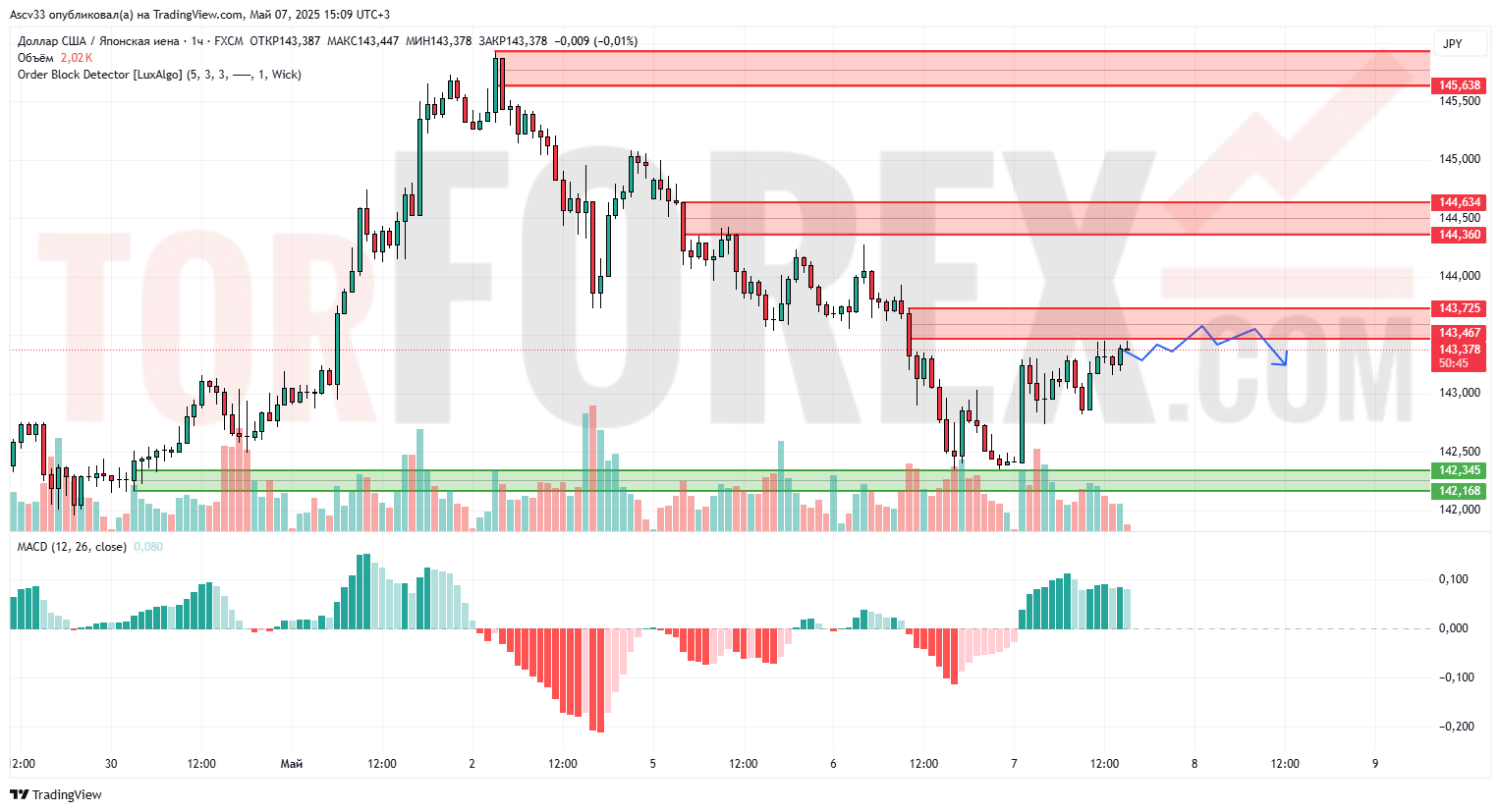 Ожидается колебание в диапазоне 142,90–143,70 с возможными попытками протестировать верхнюю границу. При откате от сопротивления вероятен возврат к 142,90 и ниже. Уверенный пробой 143,72 откроет путь к 144,36.