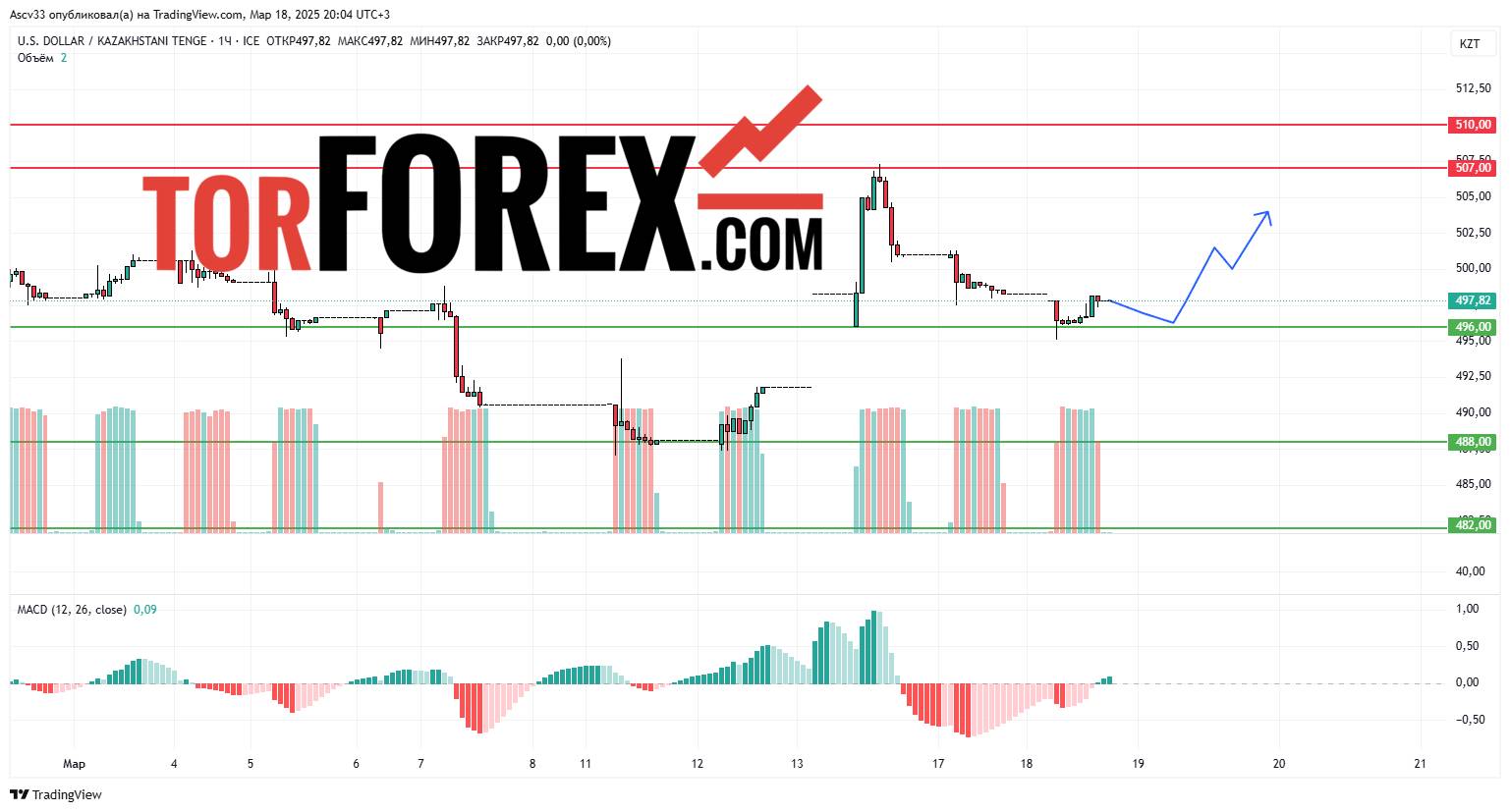- 496,00 тенге – удержание этой зоны позволит сохранить текущий баланс сил на рынке