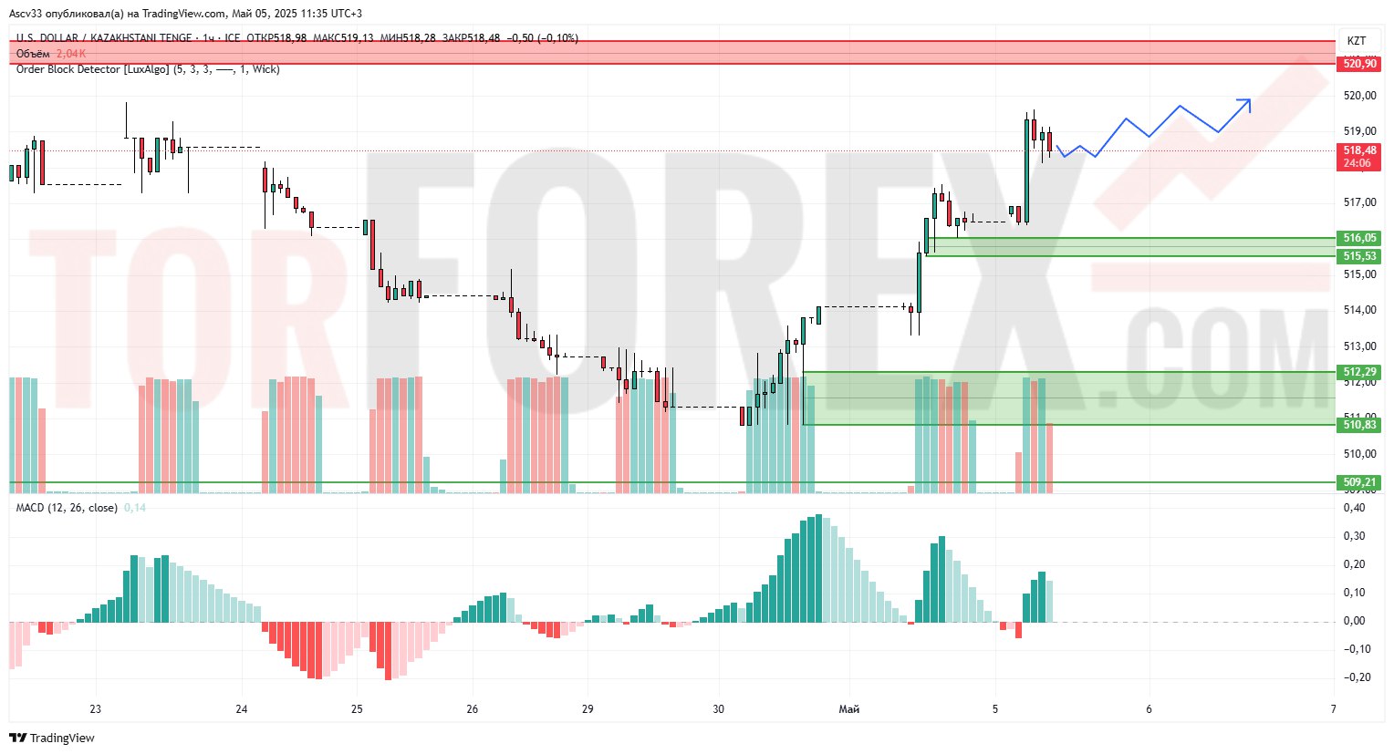 Ожидается консолидация в диапазоне 516–520 с возможным пробоем вверх при сохранении текущего импульса. При откате цена может протестировать 515.53 как поддержку.