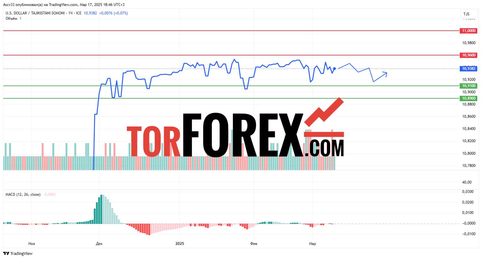 Ожидается, что пара USD/TJS останется в диапазоне 10,9100–10,9600 в течение следующих суток. Пробой сопротивления 10,9600 может привести к усилению бычьего импульса, тогда как закрепление ниже 10,9100 усилит нисходящее движение. Трейдерам рекомендуется отслеживать реакцию рынка вблизи ключевых уровней, так как их пробой определит дальнейшую динамику пары USD/TJS.