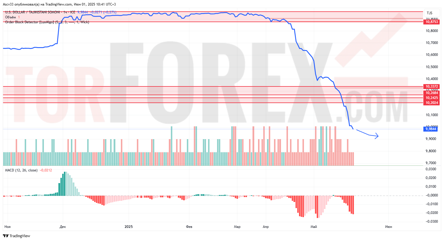- Поддержка формируется в зоне 9,9000–9,9500, однако пока не подтверждена
