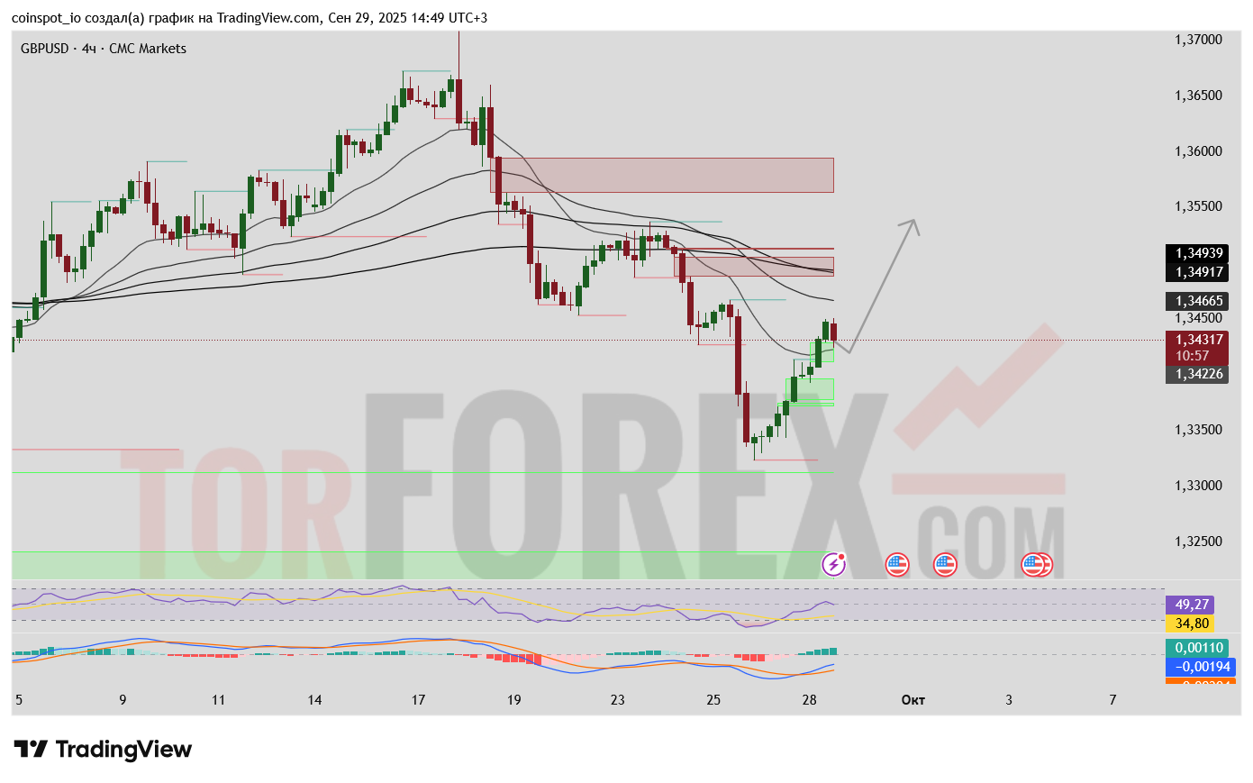 Бычий сценарий: Реализуется при успешном удержании уровня 1.34217 и последующем пробое сопротивления 1.35500. Это может активизировать движение к следующим целям в районе 1.36000-1.36500. Ключевым условием является закрепление выше локальных максимумов и улучшение динамики индикаторов.