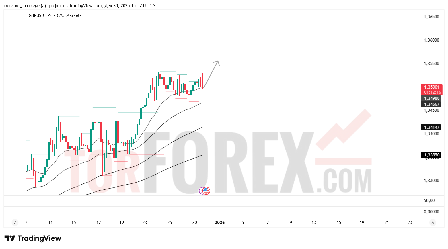 На 31 декабря 2025 года GBP/USD сохраняет нейтрально-бычью структуру с признаками консолидации. Основной сценарий — рост к 1.3555–1.3600 USD при пробое зоны сопротивления. Альтернативный сценарий — откат к 1.3440–1.34148 USD при отказе от уровня 1.35051 USD.