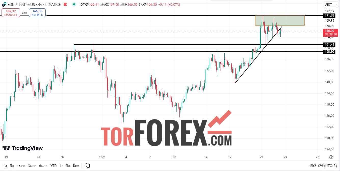 Сильные уровни поддержки наблюдаются на отметках $160, с дополнительной поддержкой на уровнях $140 и $130 в случае сильной и затяжной коррекции на рынке.