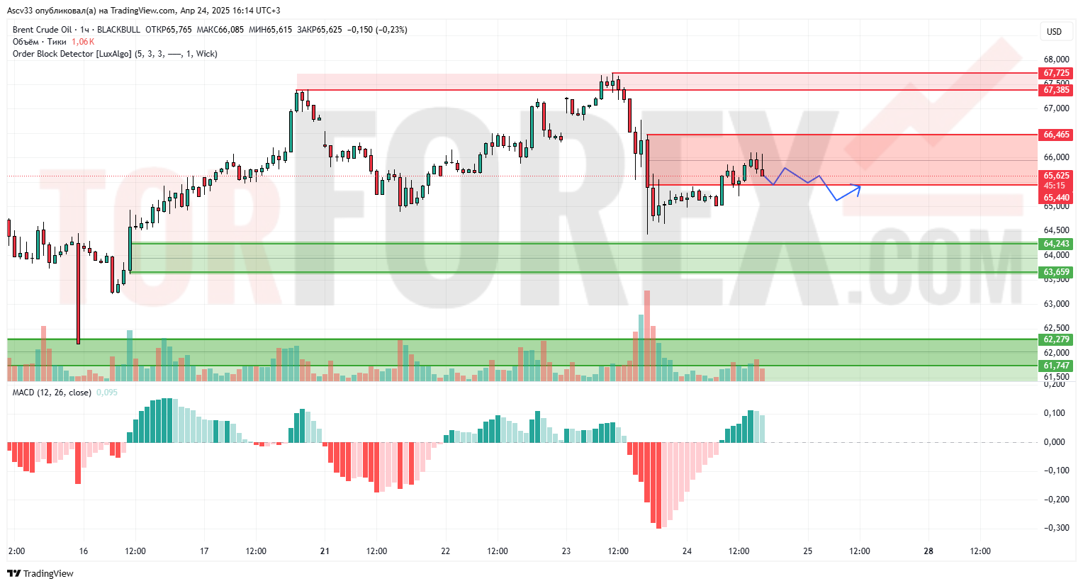 Ожидается движение в диапазоне 65.40–66.00 с повышенным риском снижения в сторону 64.20 при пробое вниз. Пробой и закрепление выше 66.50 отменят сценарий падения и откроют путь к 67.70.