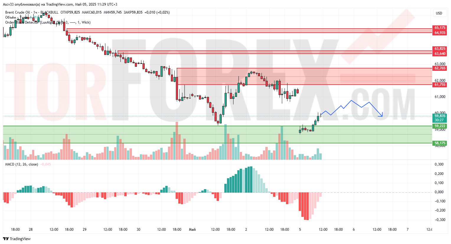 Ожидается консолидация под уровнем 61.75 с возможной попыткой ложного пробоя и возвратом к поддержке в районе 59.50–59.20. Пробой ниже — сигнал к повторному тесту зоны 58.17.