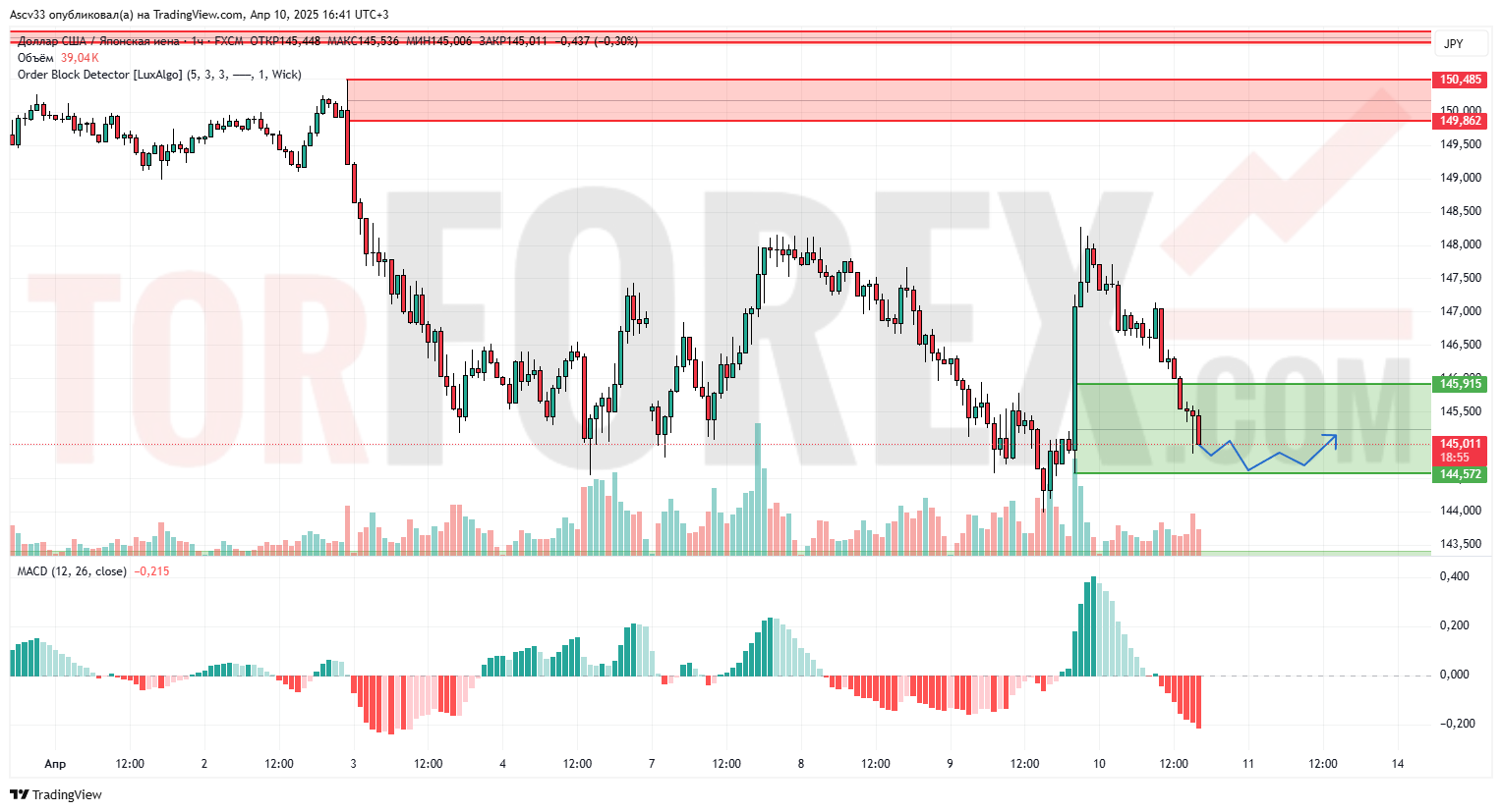 USD/JPY, вероятно, останется в диапазоне 144,60–145,90 в ближайшие часы. При прорыве выше 145,90 возможен рост к 146,80. Альтернативно, пробой ниже 144,57 усилит нисходящее движение с целью в область 143,00.