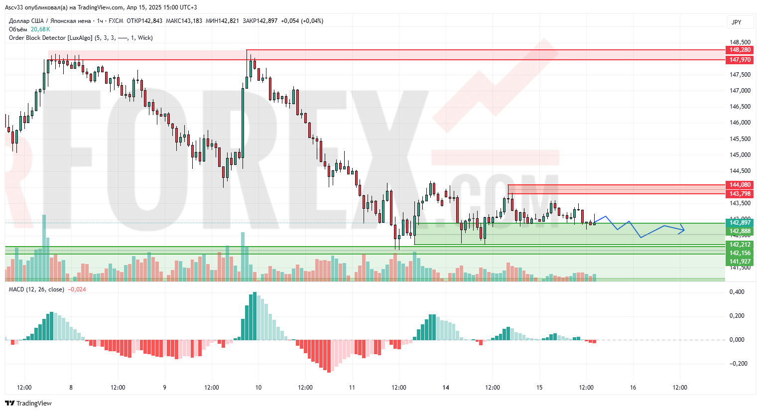 Если цена не сможет восстановиться выше 144.00, пара, скорее всего, продолжит снижение к 142.20 и далее к 141.92. Пробой вверх 144.00 ослабит давление, а закрепление выше 145.20 может изменить краткосрочный тренд на нейтрально-восходящий.