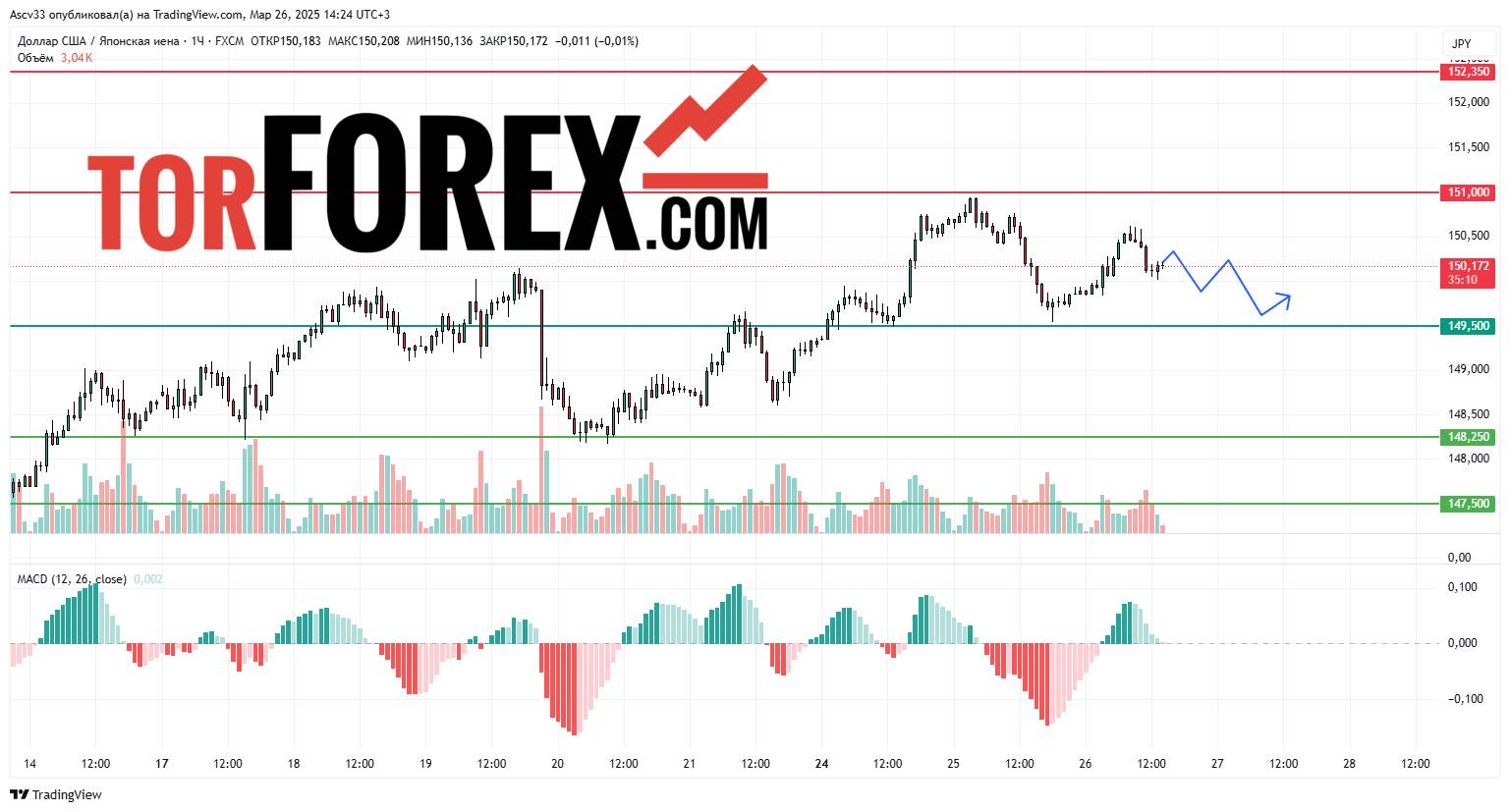 - 151,00 — ближайший уровень, прорыв которого может подтолкнуть курс в сторону 152,35;