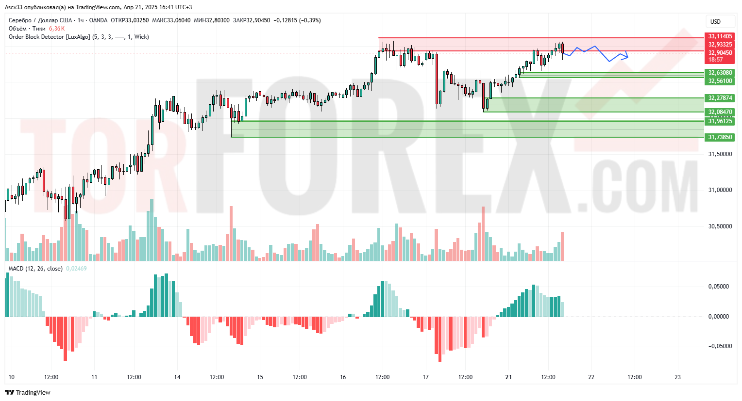Прогноз Серебро Доллар XAG/USD на 22 апреля 2025