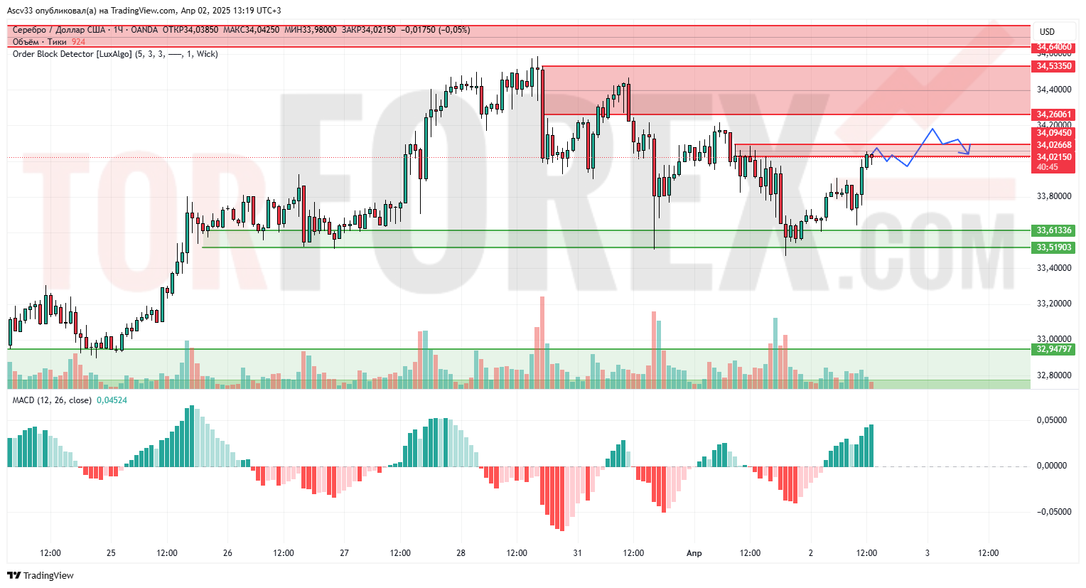 Удержание выше $34,00 — потенциальный сигнал продолжения роста.