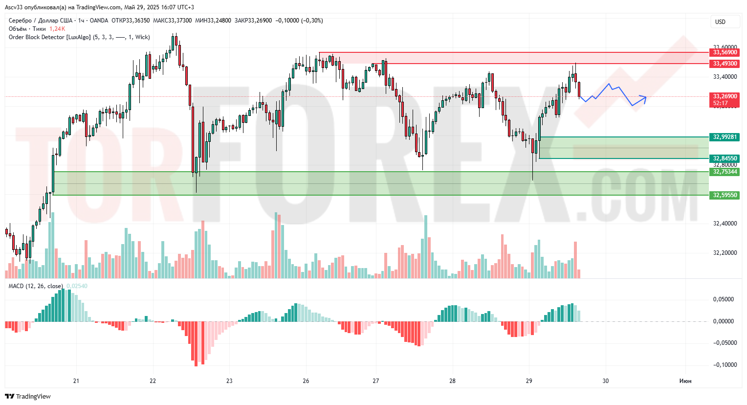 Ожидается движение в диапазоне 33,00–33,50 с возможным локальным откатом. При пробое ниже 32,99 серебро может направиться к 32,75. Уверенный рост возможен только при закреплении выше 33,57. Приоритет — нейтральный, с уклоном к коррекции от зоны сопротивления.
