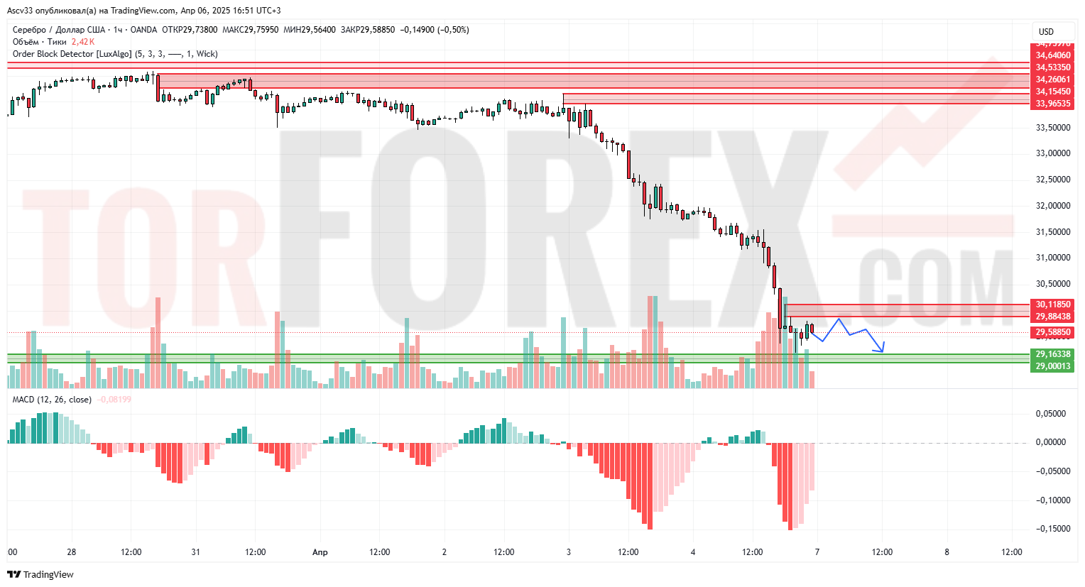 Серебро, скорее всего, продолжит консолидацию в районе $29,60–30,10. Если продавцы сохранят контроль и цена не закрепится выше $30,10, можно ожидать нового витка снижения к $29,00–28,50.