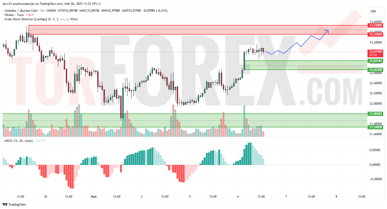 При сохранении текущего импульса вероятен тест зоны 33,35–33,53 с попыткой пробоя вверх. В случае отката поддержкой выступит уровень 32,84, ниже — 32,66. Прорыв сопротивления откроет путь к 33,6 и выше.