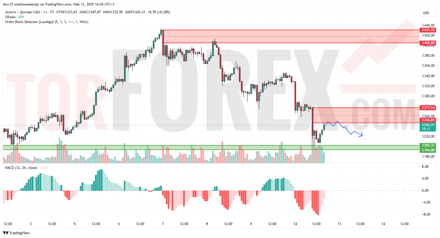 Сценарий вероятного возврата к уровням поддержки 3 202–3 194 с возможным пробоем вниз при усилении давления продавцов. Для возобновления роста золоту необходимо уверенное закрепление выше 3 277. Пока этого не произошло, шансы на нисходящее движение сохраняются.