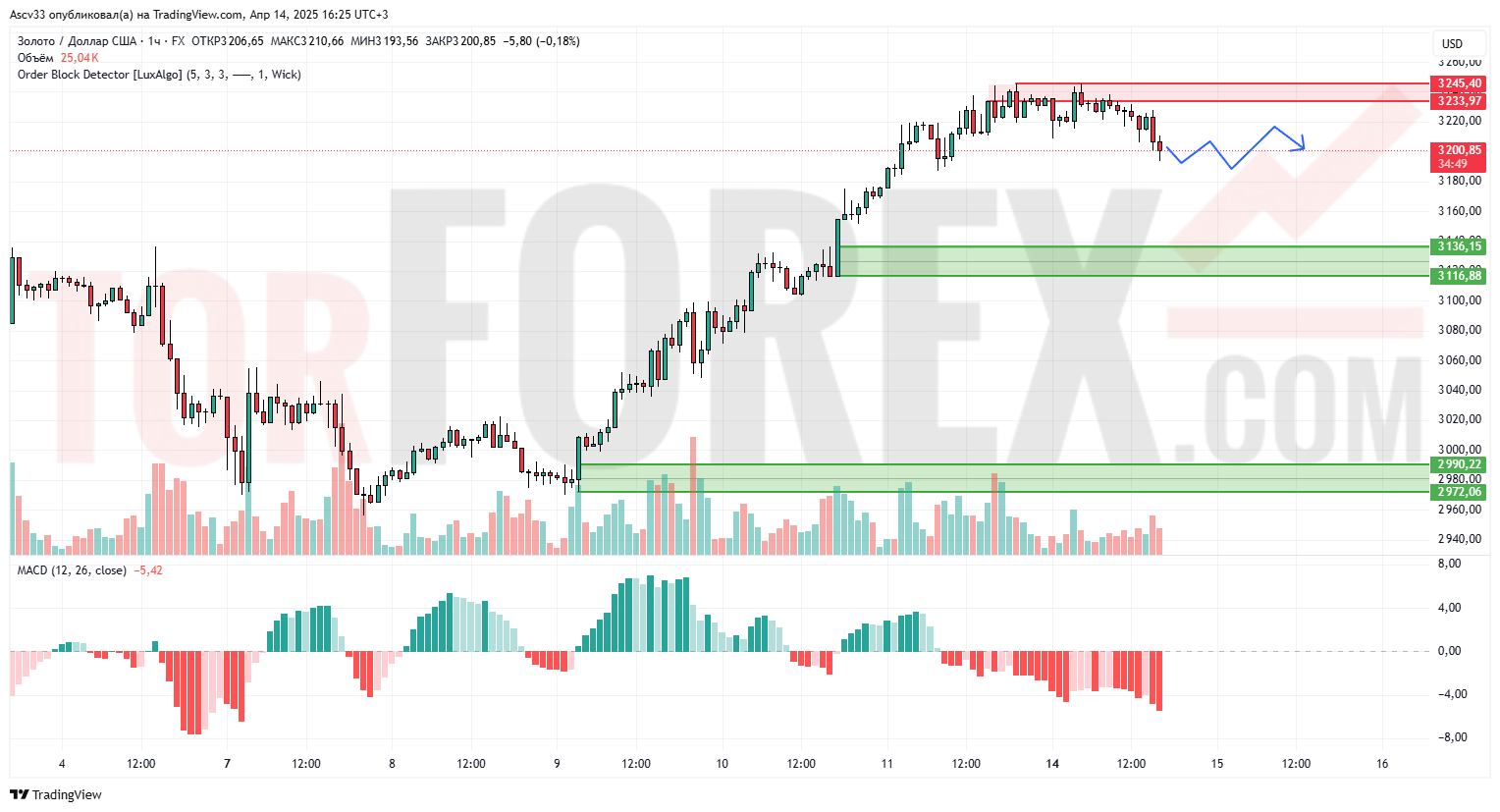 В ближайшее время возможно продолжение снижения к 3180 с последующей консолидацией. В случае пробоя этой зоны цена может протестировать 3136–3116. Для возобновления роста необходимо закрепление выше 3233–3245.