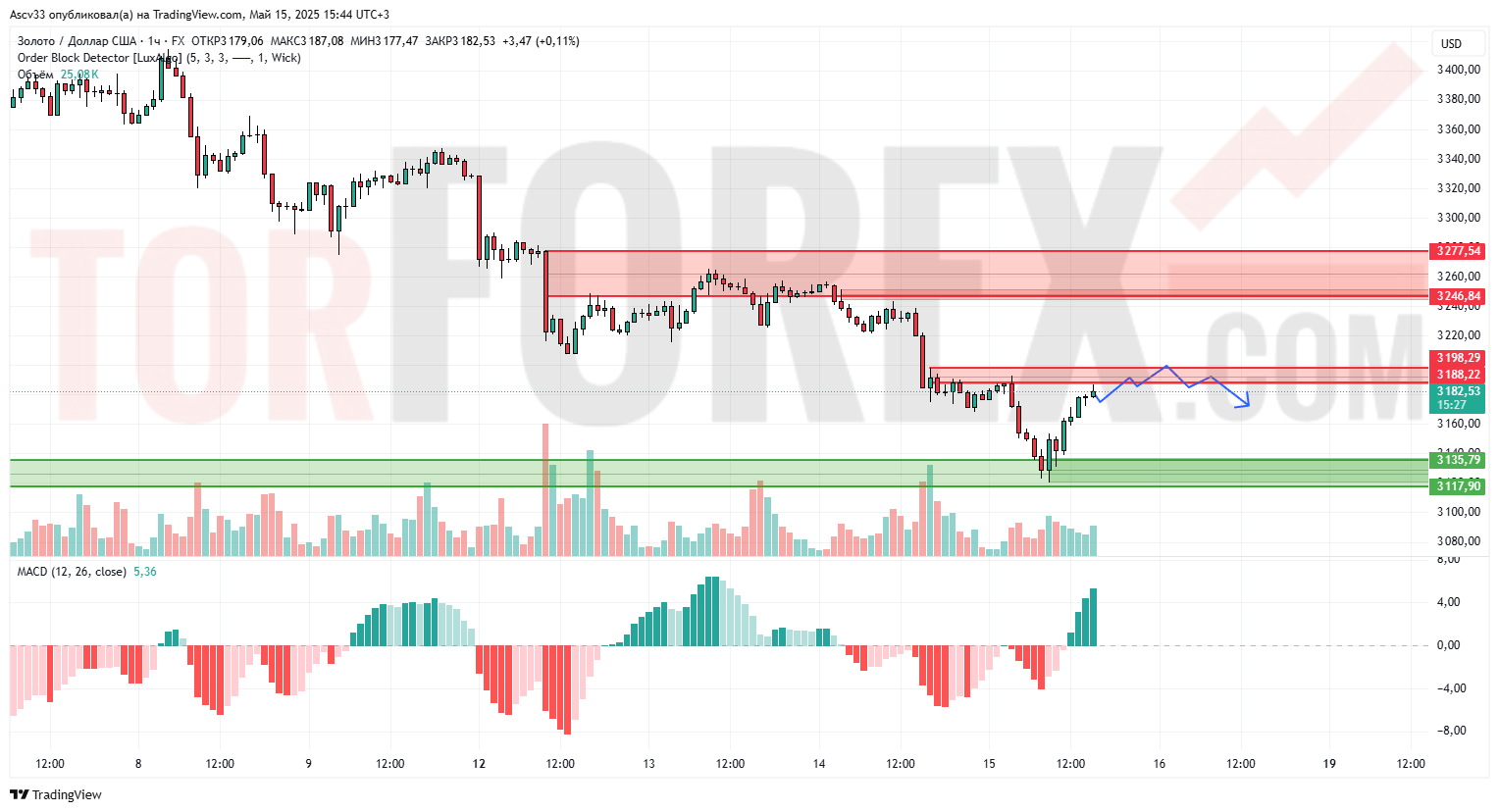Скорее всего, цена золота будет консолидироваться в диапазоне 3135–3198 с повышенной вероятностью отката от текущей зоны сопротивления. Для восстановления восходящего тренда необходим пробой 3246 на растущих объёмах. В противном случае ожидается возврат к поддержке 3135.