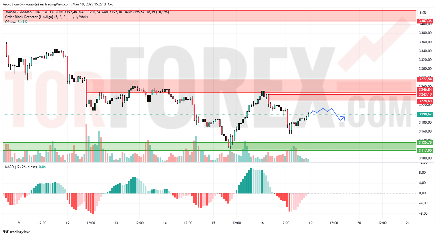 Золото показывает восстановление после недавнего снижения, достигнув зоны 3 200, однако импульс роста замедляется вблизи области предложения 3 220–3 230. Движение происходит в рамках нисходящего канала, а текущий отскок можно рассматривать как техническую коррекцию. Объёмы на росте ниже, чем на падении, что указывает на слабость покупателей. Индикатор MACD приближается к нулевой отметке, сигнализируя о потенциальной смене фазы.