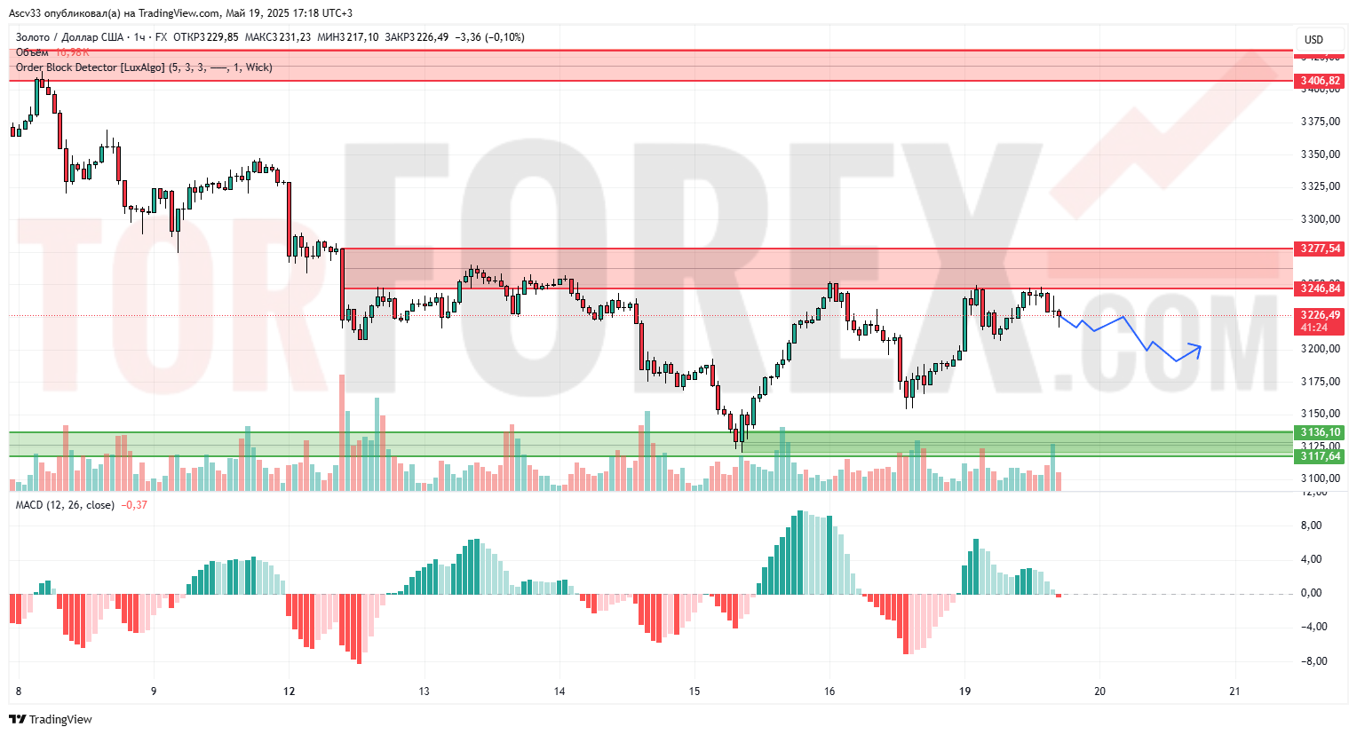 С высокой вероятностью XAU/USD продолжит снижение в направлении 3 200. В случае пробоя этой отметки целью станет зона 3 136–3 117. Для возобновления роста необходим прорыв выше 3 246 с увеличением объёмов. На данный момент приоритет — умеренно медвежий сценарий.