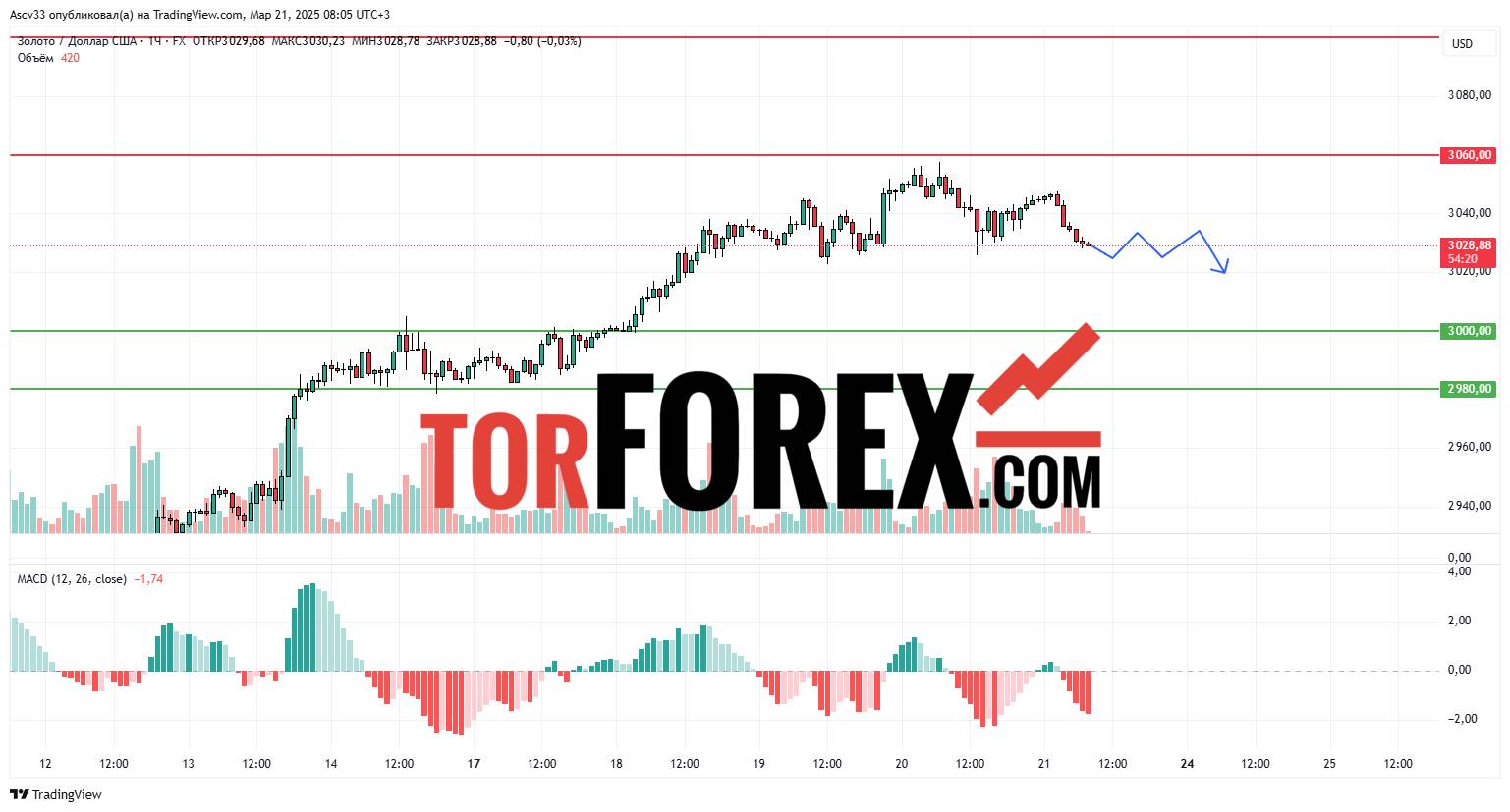 В течение следующих суток ожидается, что XAU/USD будет колебаться в пределах 3,000–3,060 USD. Пробой 3,060 USD вверх подтвердит восходящее движение, в то время как закрепление ниже 3,000 USD может усилить давление на снижение. Трейдерам рекомендуется внимательно следить за ценовыми уровнями, так как их прорыв может определить дальнейшую траекторию рынка золота.