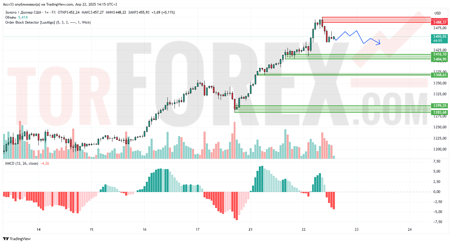 Прогноз Золото Доллар XAU/USD на 23 апреля 2025