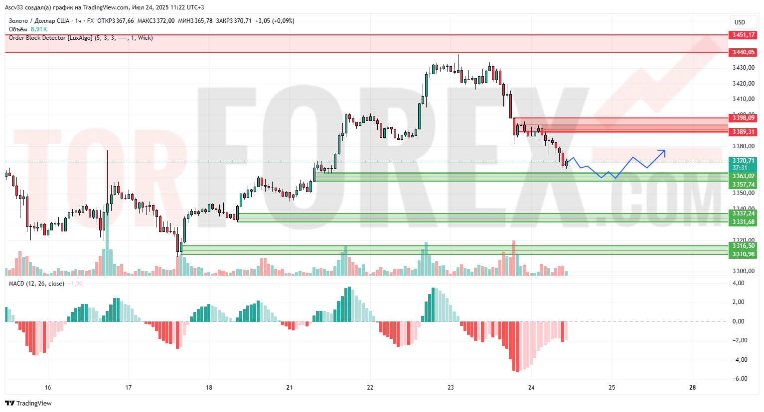 Вероятен флет в диапазоне 3357–3389 с попытками отскока вверх. При возврате выше 3389 возможен повторный тест 3440. Основной сценарий — консолидация вблизи 3360 и формирование базы для нового восходящего импульса.
