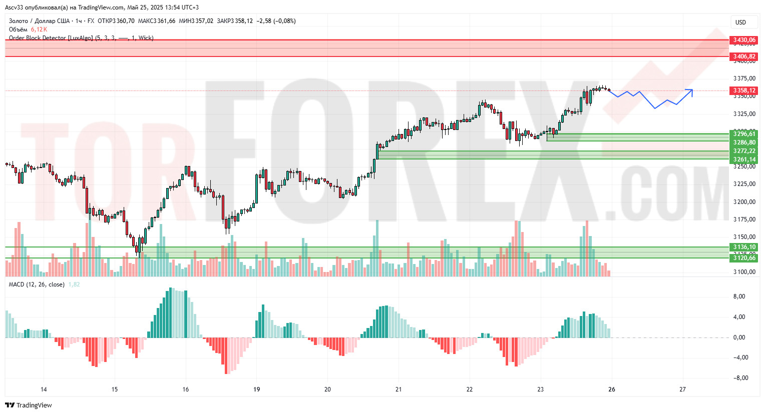 - 3406,82 — 3430,06 — ключевая зона сопротивления, образованная предыдущими максимумами. Прорыв выше этой зоны откроет путь к значительному росту.