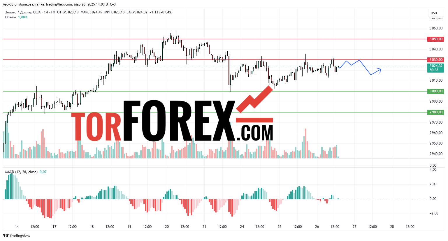 Скорее всего, в течение ближайших 24 часов XAU/USD останется в границах $3 000–$3 030. Прорыв вверх откроет дорогу к $3 050. В то же время откат ниже $3 000 может привести к снижению в район $2 980. В зависимости от реакции цены в этих точках может сформироваться новый импульс движения.