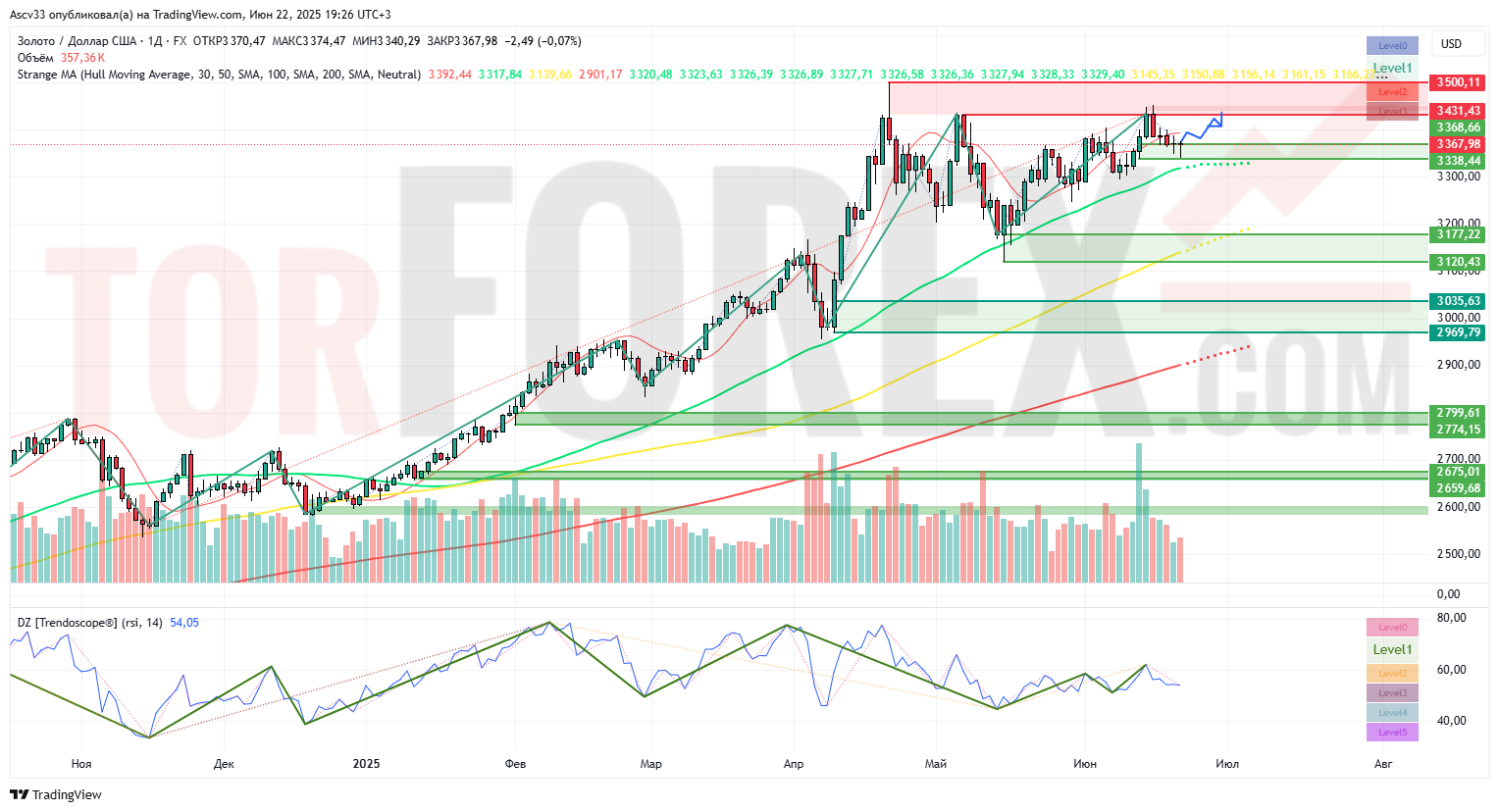 В случае пробоя и закрепления выше $3 431 открывается путь к $3 500 и выше. Этот сценарий наиболее вероятен при положительной макростатистике и слабости доллара.