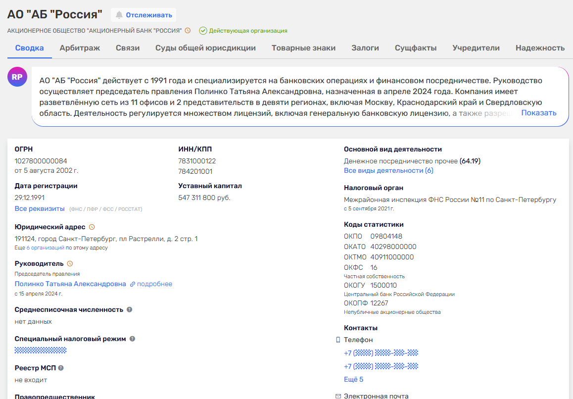 Банк имеет все необходимые документы для легальной деятельности. Юридическое лицо зарегистрировано с 1991 года, юридический адрес в Санкт-Петербурге. Известны учредители и ключевые лица.