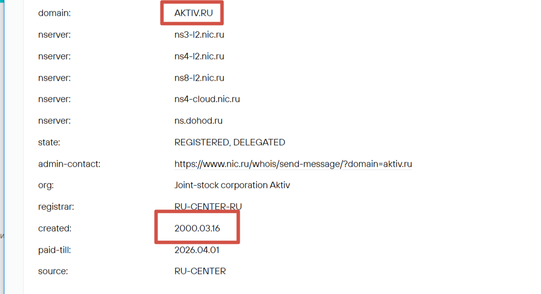 Полная информация о бирже «Актив» расположена на официальном сайте. Мы выяснили, что домен aktiv ru создан в 2000 году. Либо платформа сменила сайт, либо владельцы врут об истинном возрасте.